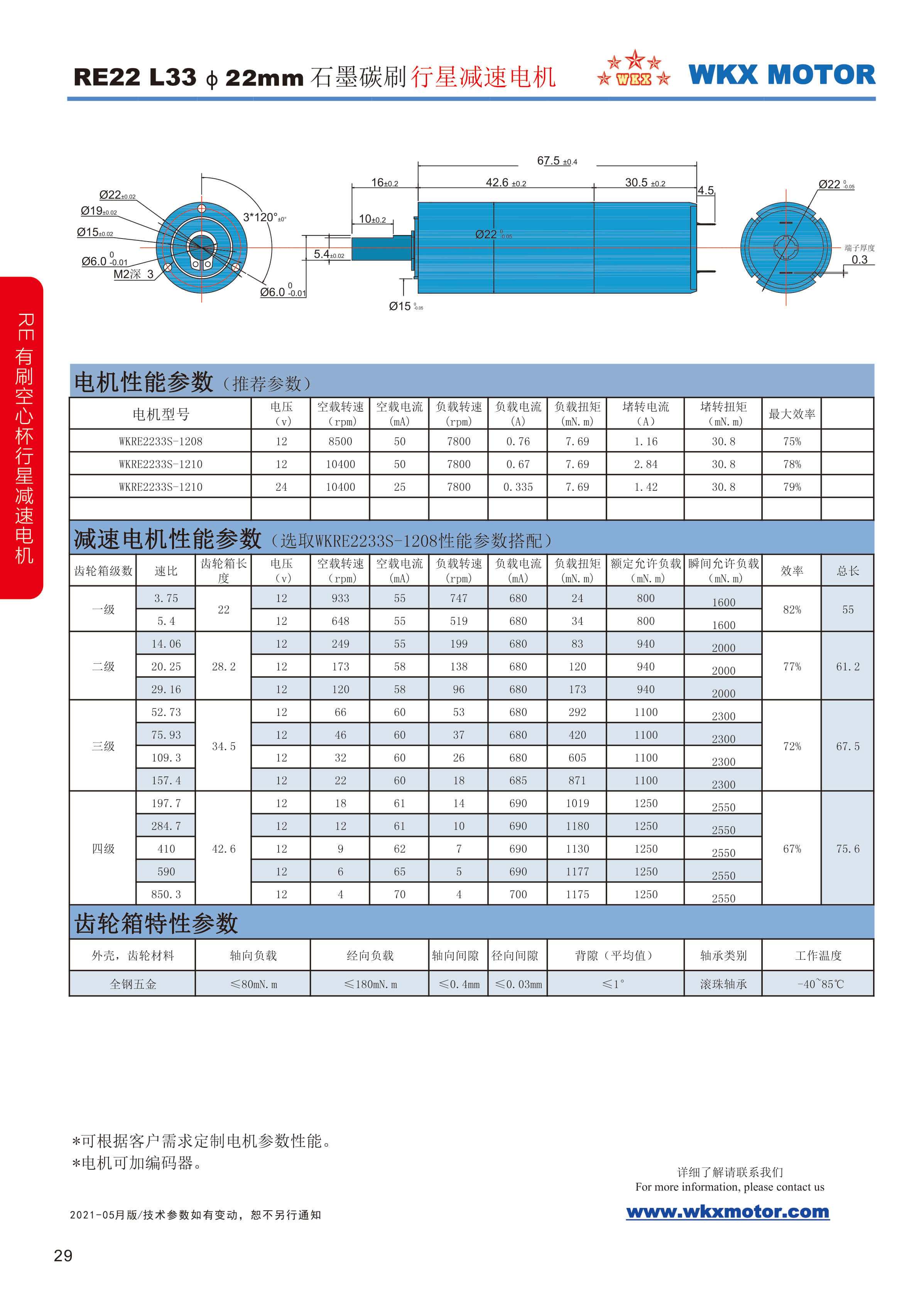 名義電壓: 12 V 轉矩上至: 1175 mNm 空載轉速: 933 min?1 堵轉轉矩: 2550 mNm 外徑: 22 mm 長度: 32 mm